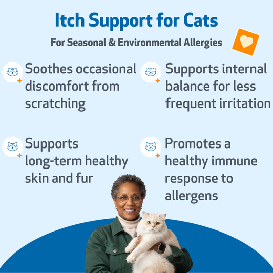 Support your cat's seasonal comfort with a holistic blend that helps ease occasional runny eyes and sneezing Supports normal histamine response to seasonal allergies Helps maintain healthy immune activity May help maintain clear nasal airways Helps with occasional nose and eye irritations Help your cat...